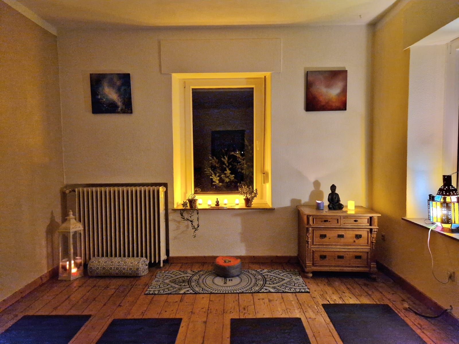Hier werden besondere Yoga-, Meditations- und Ecstatic-Events im privaten Rahmen mit euch geteilt, im gemütlich warmen Yogaraum mit Blick ins Grüne, der bis zu 8 Yogi*nis bzw. 16 Meditierende aufnehmen kann.